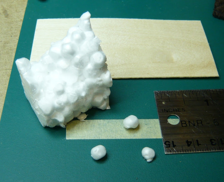 For smaller shrubs or when you don't have time to turn a balsa piece, just use the tiny Styrofoam balls, they can be detach easily without breaking if you take your time. |