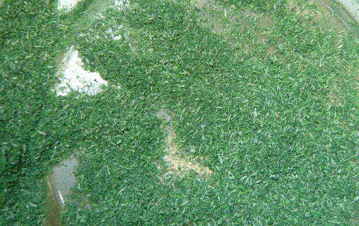 About 10% of a tan green, mostly piece of saw dust that did not take the color very well, they are also biger in size, those are the parts sticking out in the photo on the final trees. I've used different size of sieves to obtain different stock of green saw dust. From MDF to plywood to pine. |
