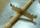 First, I've started creating the forms of the tress, here I've done 2 kind of cedars trees, a "menhir form" and some "ball form", a piece of balsa wood of 3/8 x 3/8 was use to achieve those forms, all turned on a mini lathe, and then sanded brefly. |